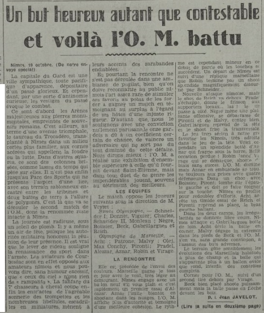 Résumé La Provence Sportive du 20 octobre 1941 |