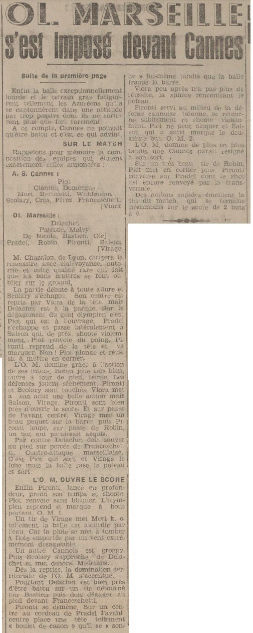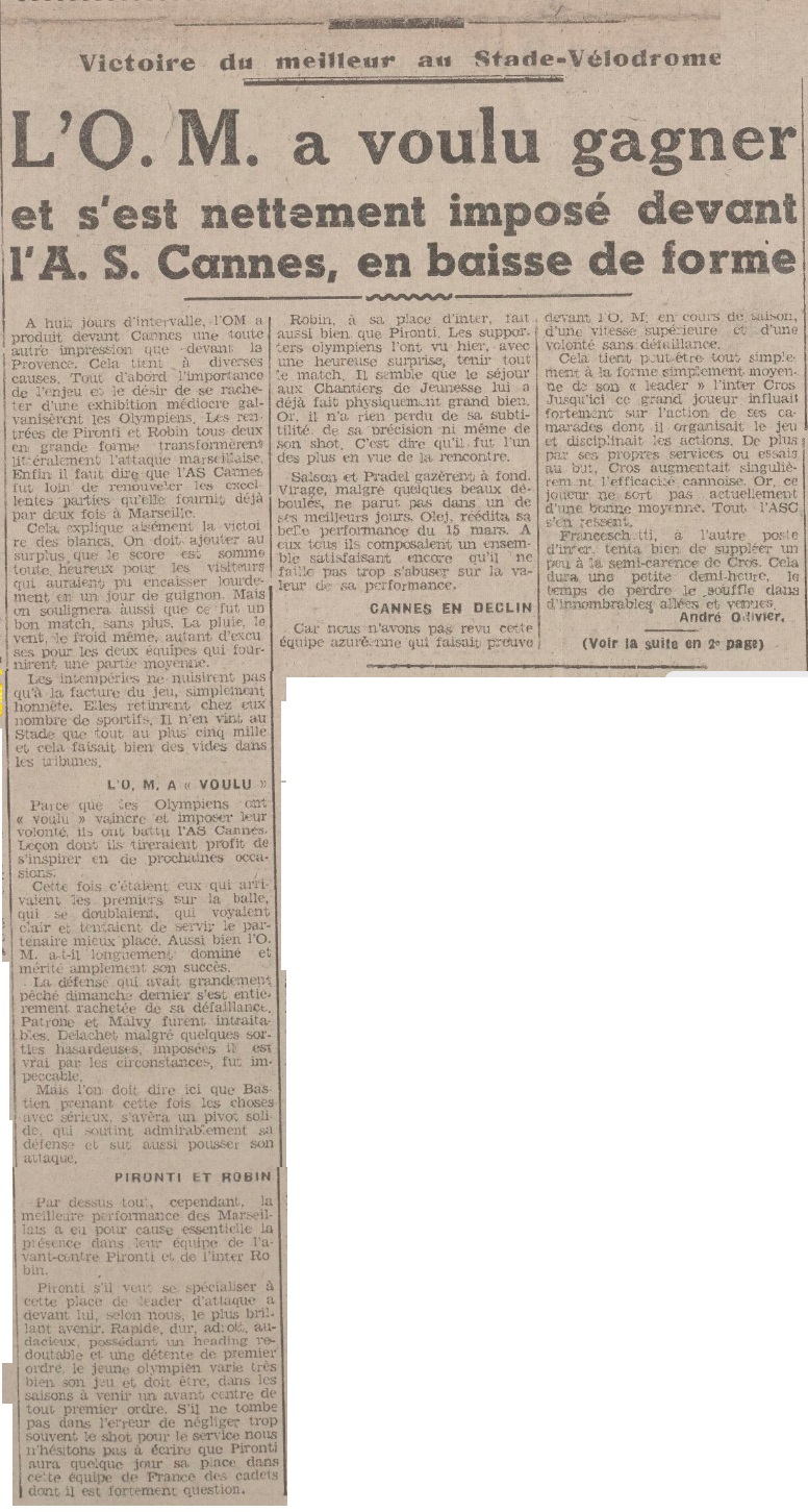 Résumé La Provence Sportive du 23 mars 1942 |