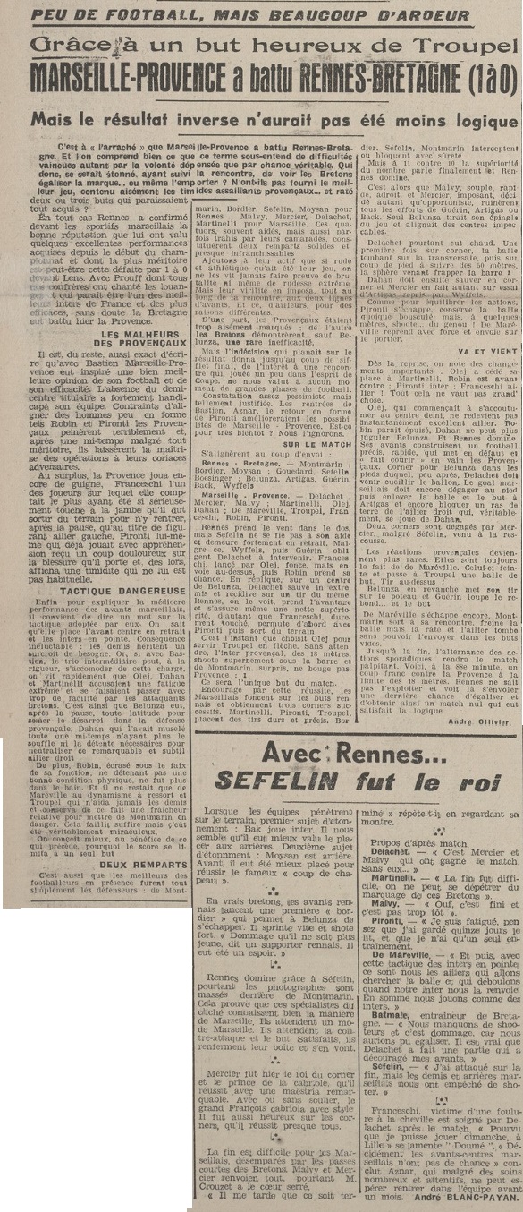 Résumé La Provencal Sportive du 25 octobre 1943 |