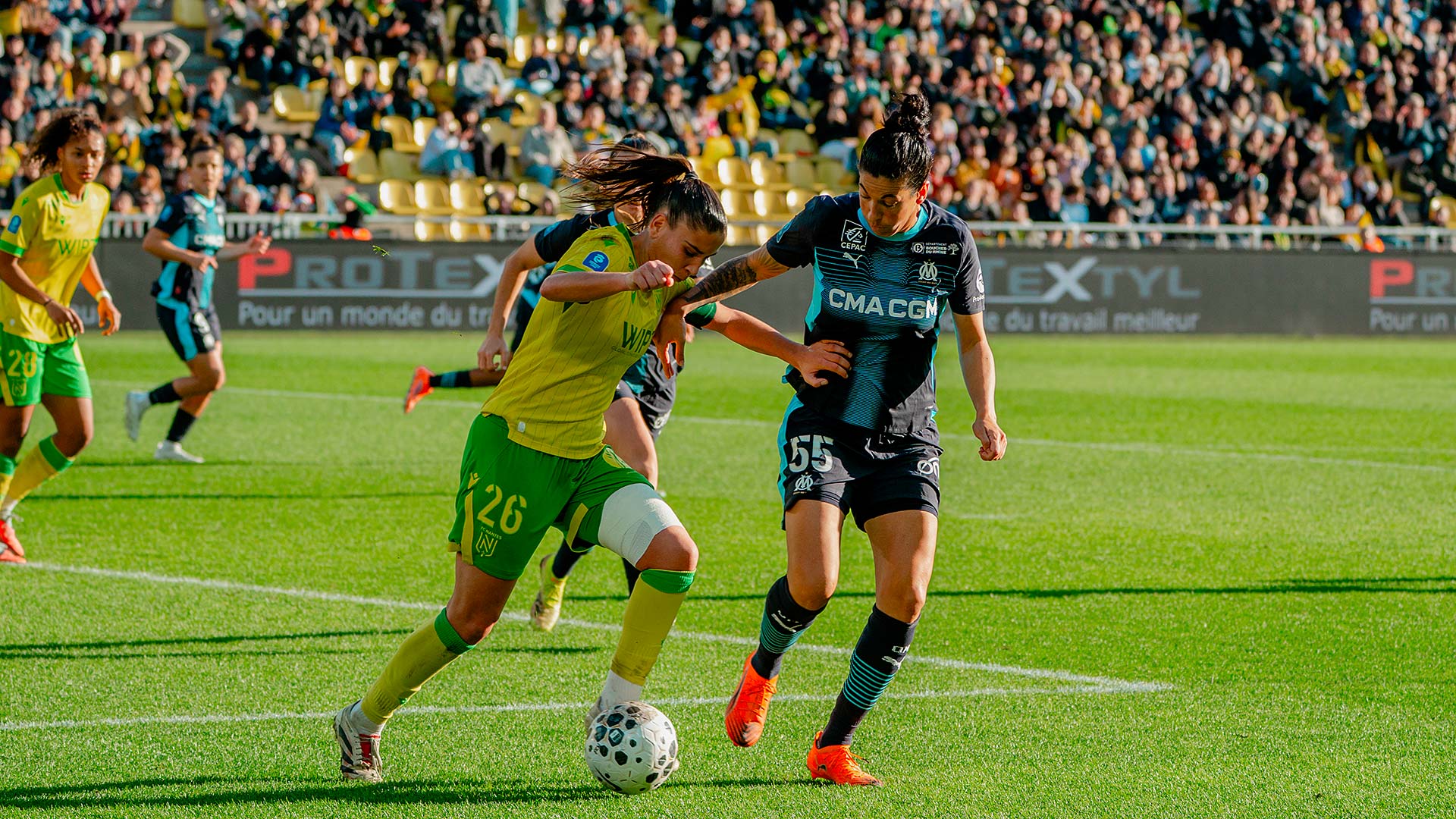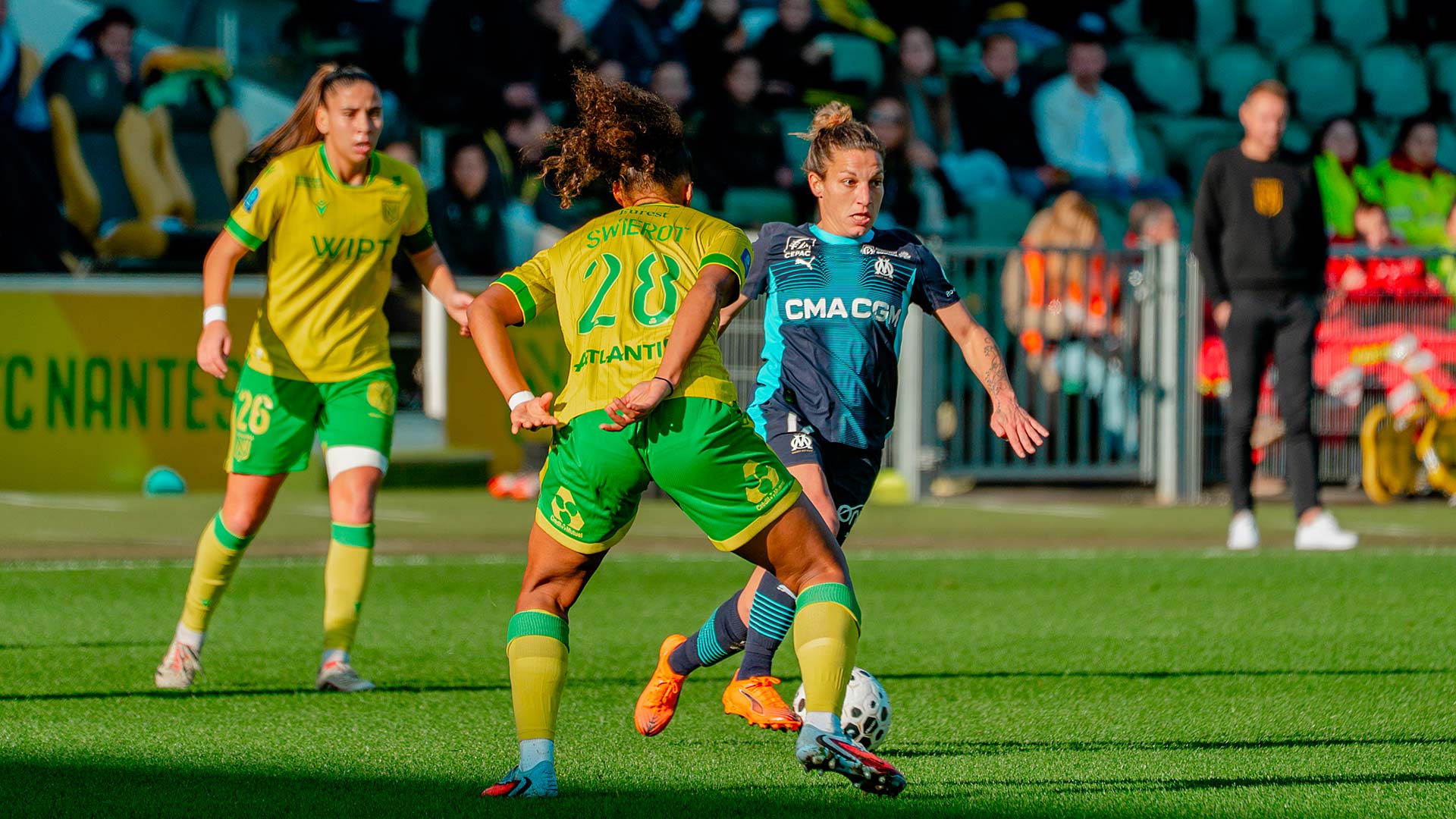 En déplacement à la Beaujoire pour affronter le FC Nantes, les Marseillaises ont perdu 3 buts à 0 Malgré une bonne entame de match face au FC Nantes, dans un stade de la Beaujoire qui a battu son record d'affluence pour une rencontre de Première Ligue Arkema avec 17491 spectateurs, nos Marseillaises ont encaissé trois buts en dix minutes entre les 23e et 33e minutes de jeu. Menées 3-0, les joueuses de Corinne Diacre n'ont plus encaissé de but en seconde période mais n'ont pas su trouver la faille dans la défense des Canaris. Au classement, les Marseillaises sont neuvièmes avec 8 points. Lors de la prochaine journée, le samedi 20 décembre à 21 heures, elles se déplaceront sur la pelouse du Montpellier HSC |