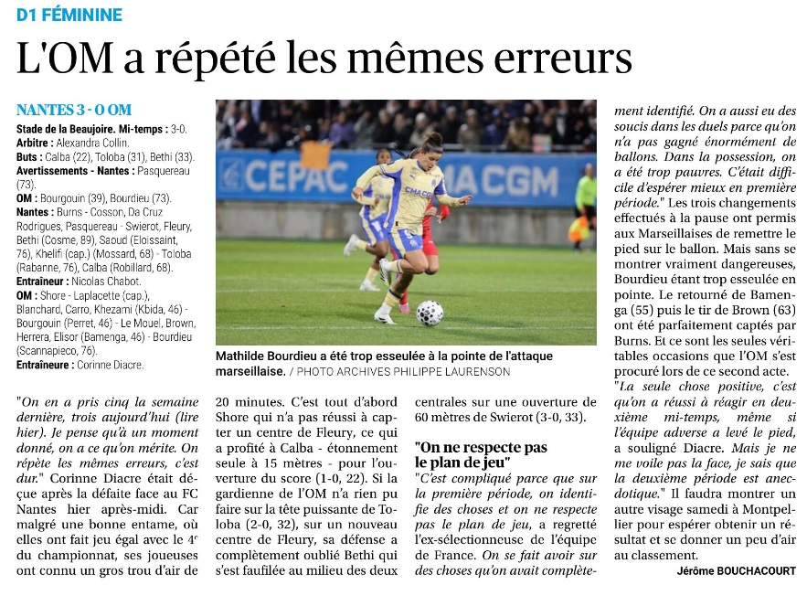 Les Marseillaises : Défaite à Nantes
