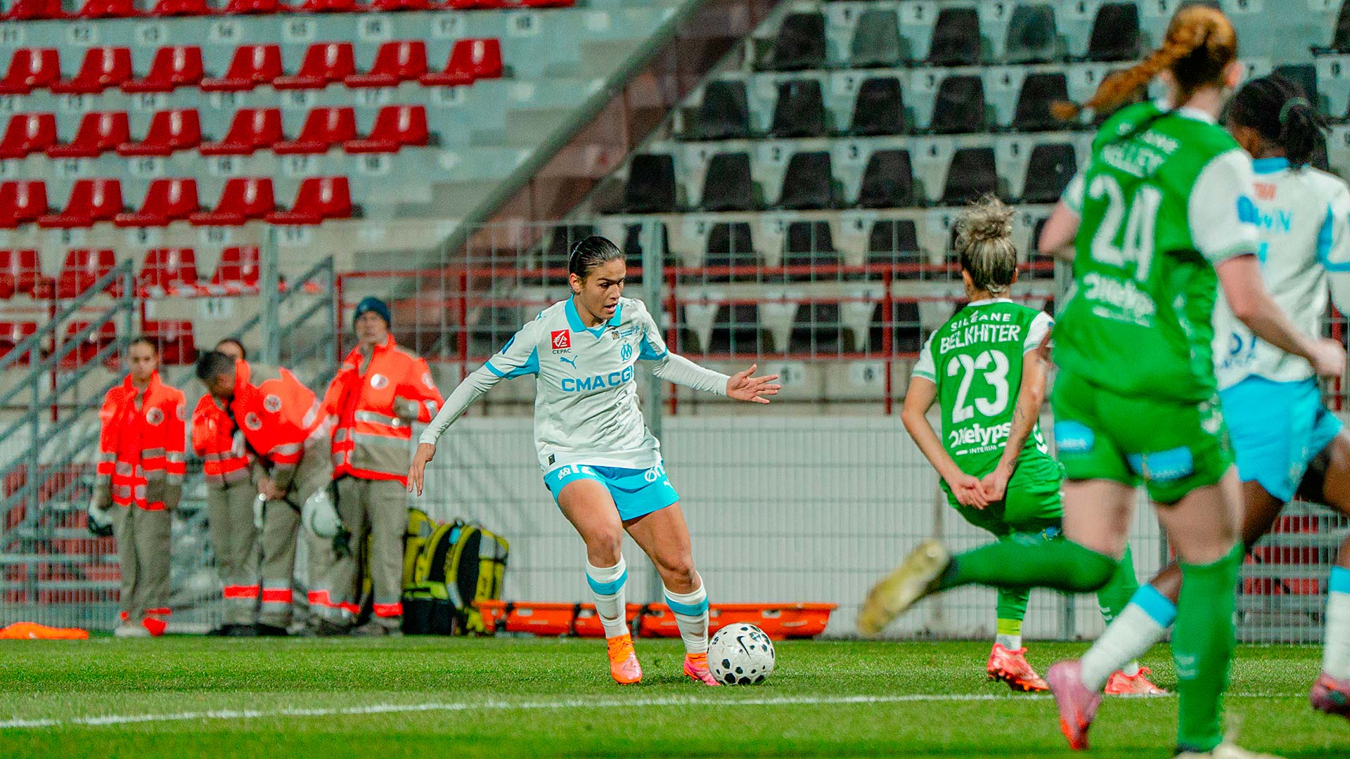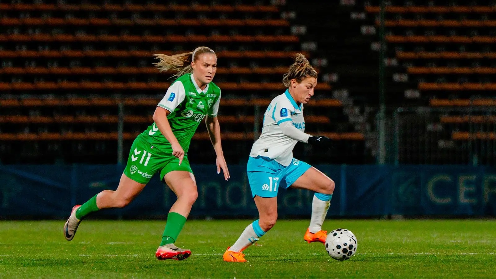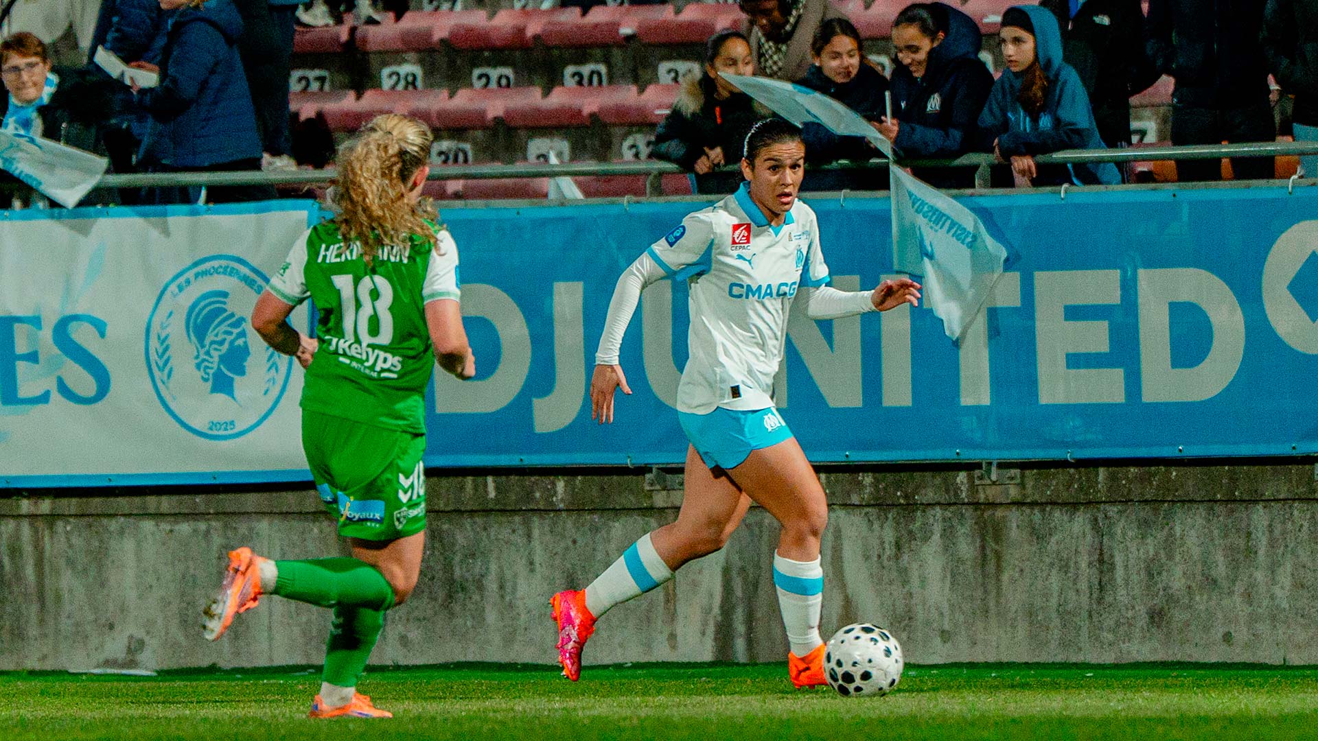 Mercredi soir, les Marseillaises se sont inclinées 1 à 0 à Martigues face à l'AS Saint-Etienne. Pour la 12e journée d'Arkema Première Ligue les Marseillaises accueillaient l'ASSE au stade Francis-Turcan de Martigues. Après une première période plutôt équilibrée où chaque formation a eu ses moments forts, les Vertes ont pris l'avantage au retour des vestiaires. Malgré une seconde période de haute intensité de la part des joueuses de Corinne Diacre, elles n'ont pas pu égaliser. Les Marseillaises ont même terminé la rencontre à dix contre onze après la sortie sur civière de Ninon Blanchard. Au classement, l'OM reste neuvième avec onze points. Lors de la prochaine journée, le samedi 17 janvier à 17 heures, l'OM se déplacera sur la pelouse du FC Fleury 91. |