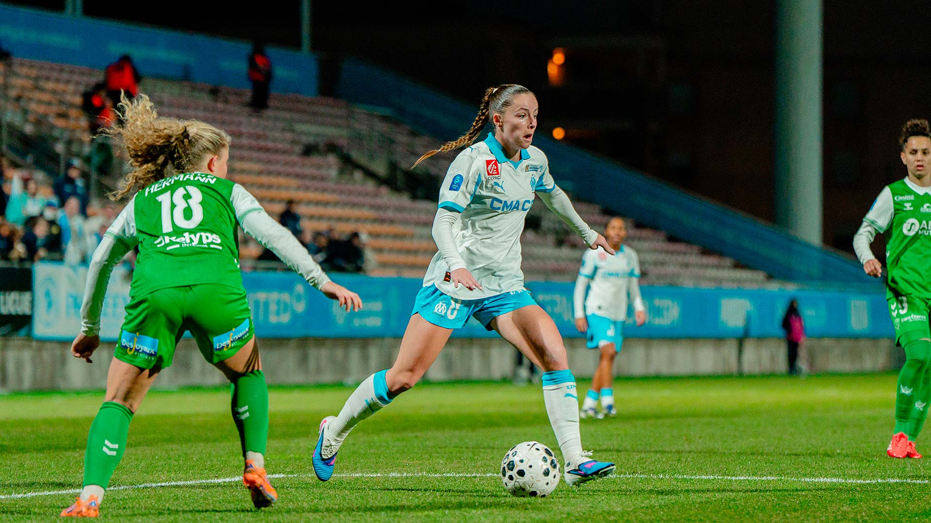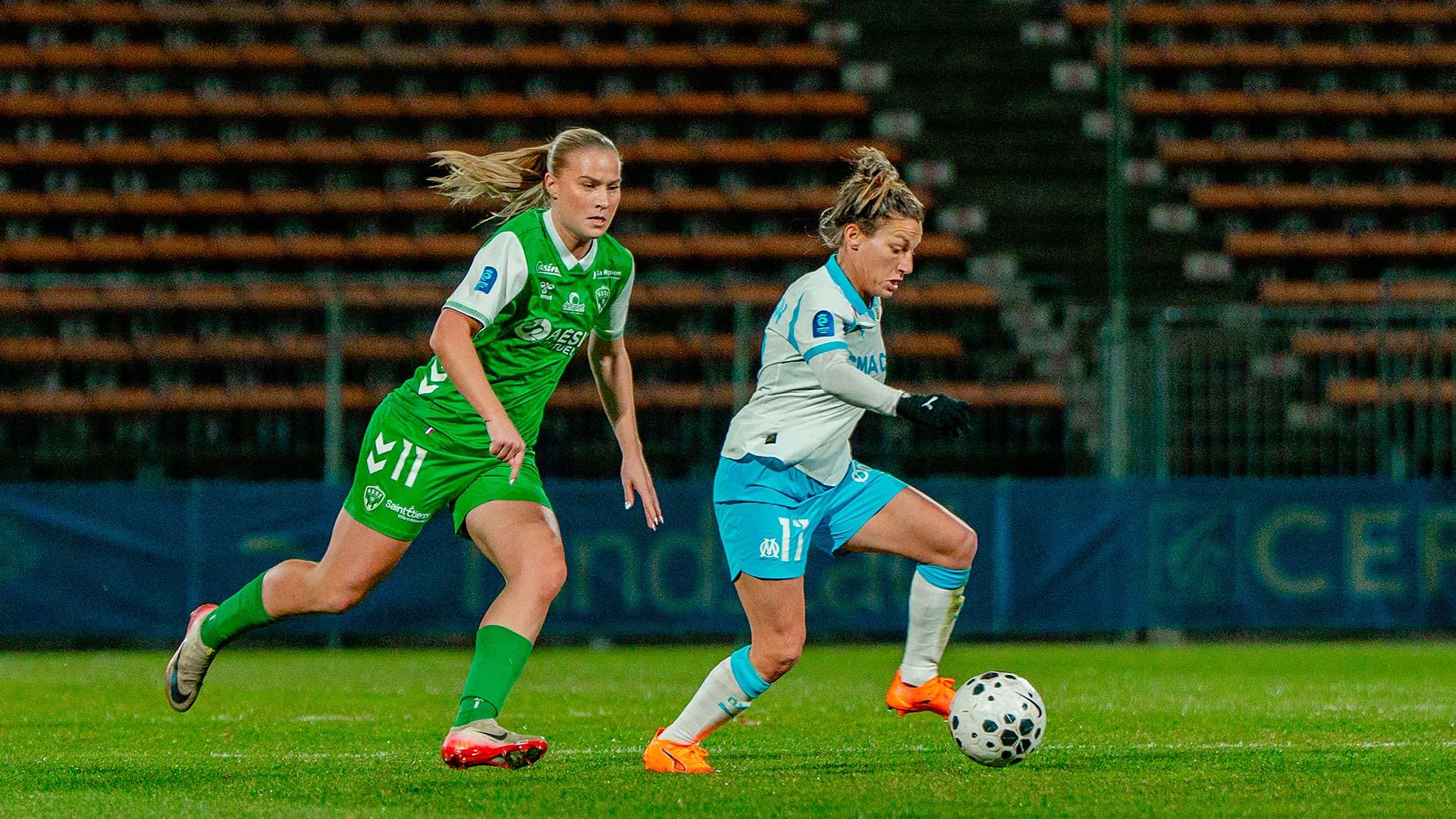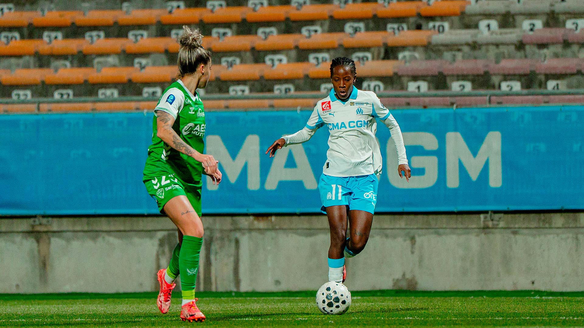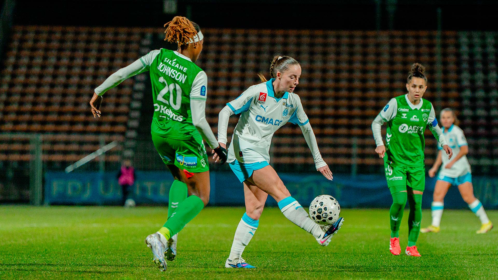 Mercredi soir, les Marseillaises se sont inclinées 1 à 0 à Martigues face à l'AS Saint-Etienne. Pour la 12e journée d'Arkema Première Ligue les Marseillaises accueillaient l'ASSE au stade Francis-Turcan de Martigues. Après une première période plutôt équilibrée où chaque formation a eu ses moments forts, les Vertes ont pris l'avantage au retour des vestiaires. Malgré une seconde période de haute intensité de la part des joueuses de Corinne Diacre, elles n'ont pas pu égaliser. Les Marseillaises ont même terminé la rencontre à dix contre onze après la sortie sur civière de Ninon Blanchard. Au classement, l'OM reste neuvième avec onze points. Lors de la prochaine journée, le samedi 17 janvier à 17 heures, l'OM se déplacera sur la pelouse du FC Fleury 91. |
