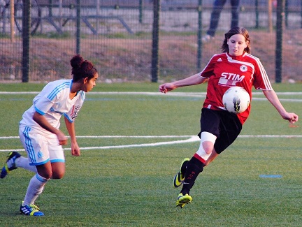 La DH échoue de peu... Le public avait répondu présent, le beau temps était de la partie et le synthétique du stade Saint Hilaire était à la perfection. Bref, les conditions étaient réunies pour un beau match de football. Les équipes en présence, habituées du podium depuis le début du championnat régional, ont proposé une opposition de style intéressante. Le bloc bas montilien perturbait la construction du jeu phocéenne. Si les locales ne se montraient, quasiment, jamais dangereuses devant les buts olympiens, elles ne concédaient que très peu de situations favorables à leurs adversaires. Caro Dumas veillait au grain sur les quelques frappes vicieuses des visiteuses. Malheureusement, sur une erreur de relance des Rouges, Pourquies ouvrait le score suite à un centre-tir de M,Bassidjé (30e). En seconde période, les Montiliennes jouent plus haut et s'exposent aux contres des Olympiennes. Cette pression permet d'obtenir un penalty à quelques minutes du terme de la rencontre. Malheureusement, la gardienne marseillaise, peu sollicitée jusque là, réussissait l'arrêt qu'il fallait pour garder l'avantage. Les Rouges se livraient alors complètement dans les dernières minutes et, sur une dernière contre-attaque, les Phocéennes scellaient leur victoire grâce à la réalisation d'Ahmed (90e). La prestation des Vauclusiennes aura montré du progrès par rapport à la saison dernière. Toutefois, l'adversaire du jour s'est montré supérieur et il faudra cravacher pour conserver une place en haut de tableau de ce championnat de DH. L'histoire entre le FCFMV et l'OM ne s'arrête pas là puisque le premier match de 2014 opposera les Olympiennes aux Montiliennes. Mais, cette fois-ci, ça sera pour le compte de la Coupe de France et la rencontre se jouera en terres marseillaises... |